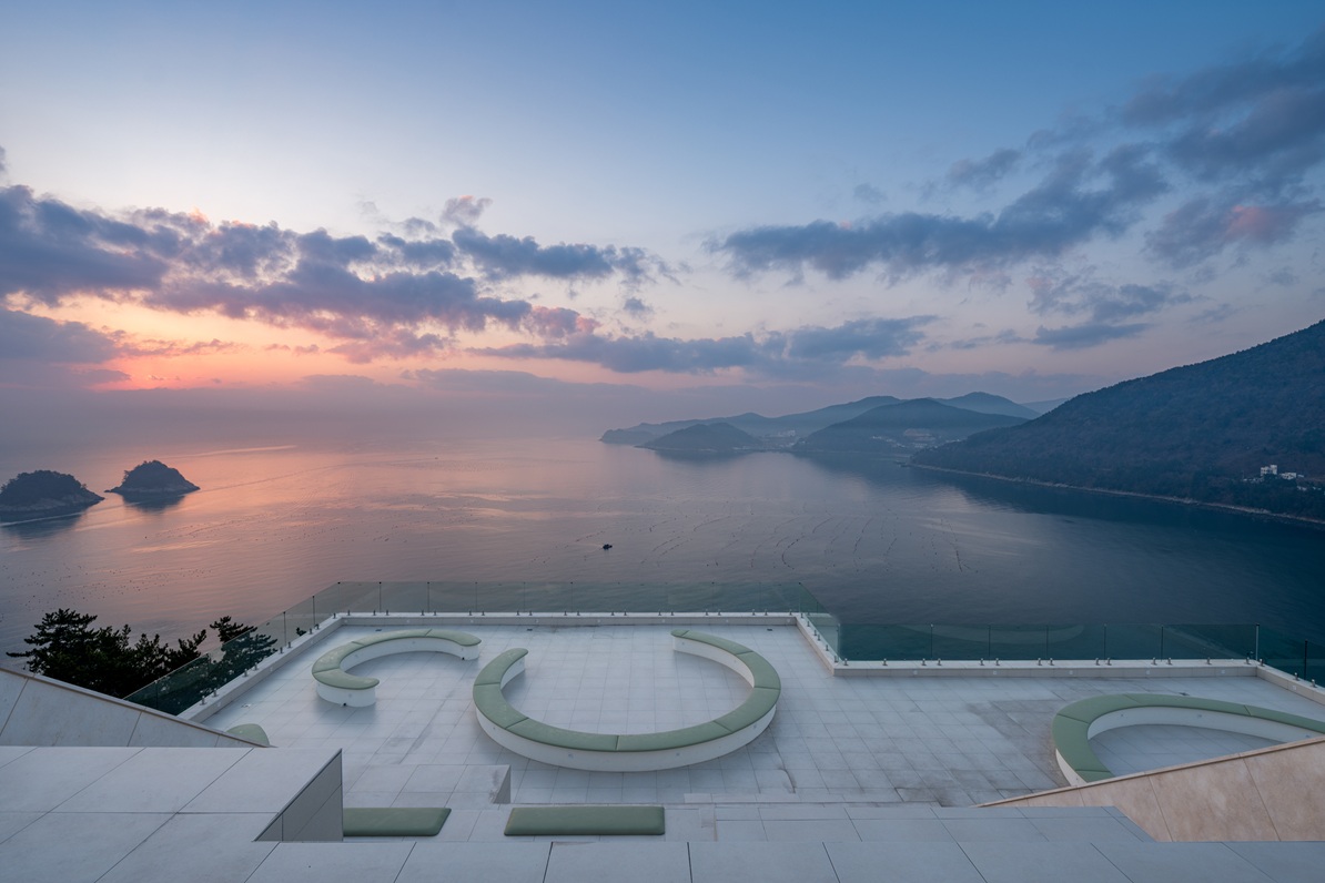 The site of Moifin Sky was once home to a resort called Morning in Finland, operated by the same client. Known for its stunning views of the Namhae sea and its infinity pool, the resort had become a popular destination for tourists. In 2020, while exploring new business opportunities, the client purchased the plot in front of the resort and opened a café named Moifin designed by UTAA Architects. The café became a phenomenal success, eventually surpassing the resort in revenue. Encouraged by this, the client decided to demolish the existing resort and build a much larger flagship café in its place, once again commissioning UTAA for the design.