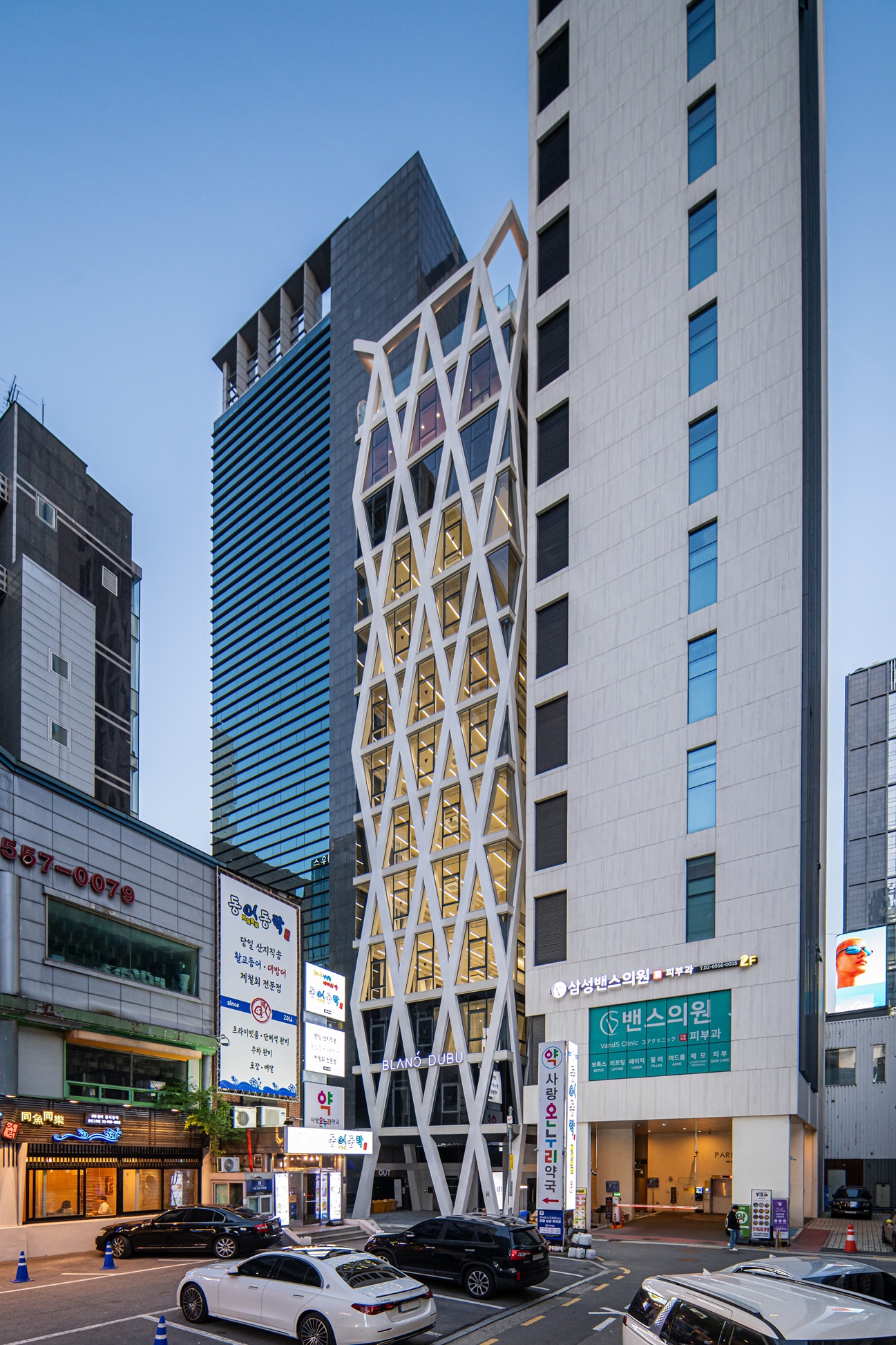 Blancdubu Architect | Ahn, Byungdon _ AN Architects Client | Blancdubu.inc Supervisor | AN Architects Construction | C-space.inc / oneA.inc Project team | Song, Myeongjl / Han, Byungseong / Kim, Donghyun Design intention realization | AN Architects Location | Samseong-dong, Gangnam-gu, Seoul Program | Neighborhood facilities Site area | 244.20㎡ Building area | 145.19㎡ Gross floor area | 1,993.55㎡ Building to land ratio | 59.46% Floor area ratio | 667.42% Building scope | B3F - 12F Structure | RC Exterior finishing | White Exposed concrete Interior finishing | White Exposed concrete Design period | Oct. 2021 – Apr. 2022 Construction period | May 2022 – Mar. 2025 Photograph | Ham, Young-in Structural engineer | SDM_Nojaecheon Mechanical·Electrical·Fire engineer | Seowon ENC |