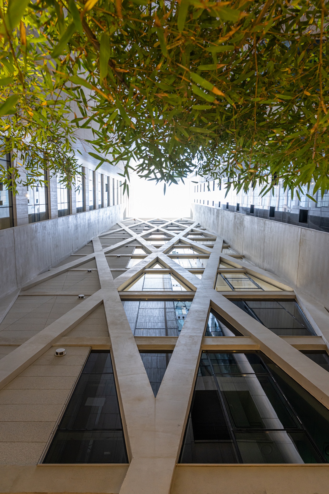 The inner column was removed as much as possible, and the column was exposed to the outside, but the ceiling also evolved into a flat concept, starting with the initial plan, the current diagonal pattern became a structure, and the structure became a pattern, forming an elevational facade.