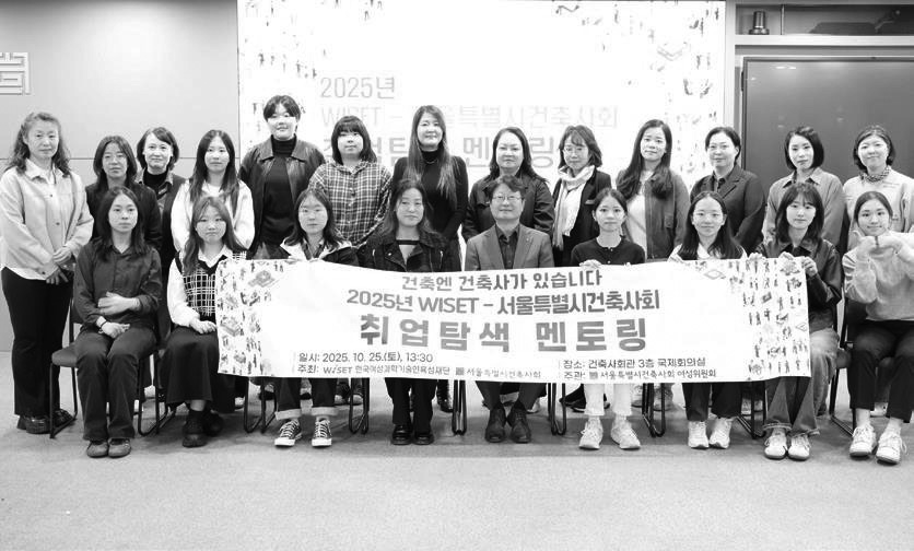 서울특별시건축사회 여성위원회는 차세대 여성 건축학도 육성을 위한 사회 공헌 사업으로 진행하고 있는 WISET(한국여성과학기술인육성재단) 멘토링 활동의 일환으로 10월 25일 건축 관련 전공 여대학(원)생 12명과 멘토 건축사들이 한 자리에 모였다. 건축사회관에서 진행한 멘토링에서는 학생들과 미래 설계를 위한 발표와 대화의 시간을 갖고, 올해의 활동 소감을 공유했다.