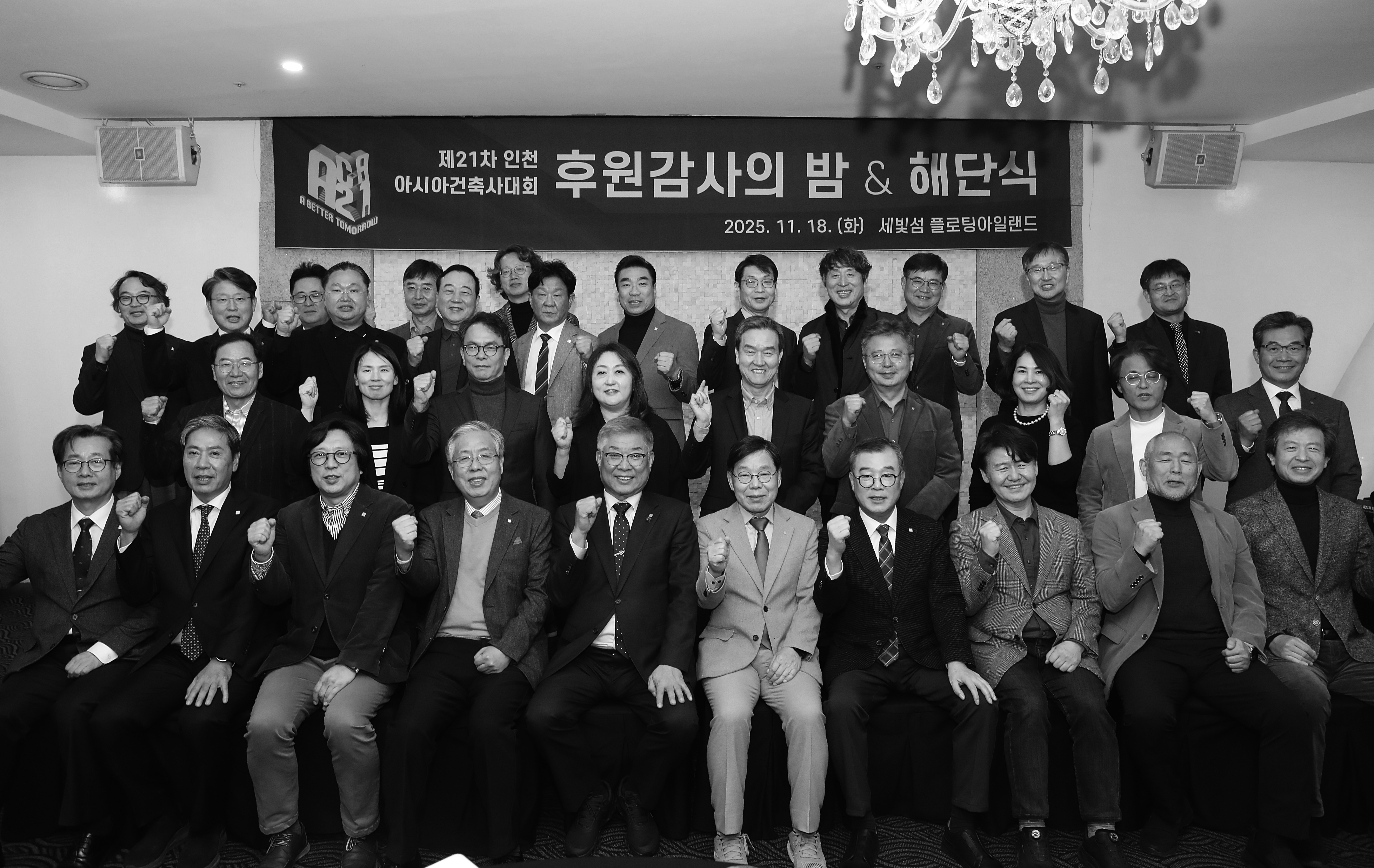 대한건축사협회는 11월 18일 서울시 서초구 소재 세빛섬 리브고쉬에서 ‘후원 감사의 밤 및 해단식’을 가졌다. 오후 6시부터 시작된 행사에는 대한건축사협회 김재록 회장과 임원, 제21차 인천아시아건축사대회 조직위원회 강성익 조직위원장과 위원, 후원사 대표 및 관계자 50여 명이 참석했다.