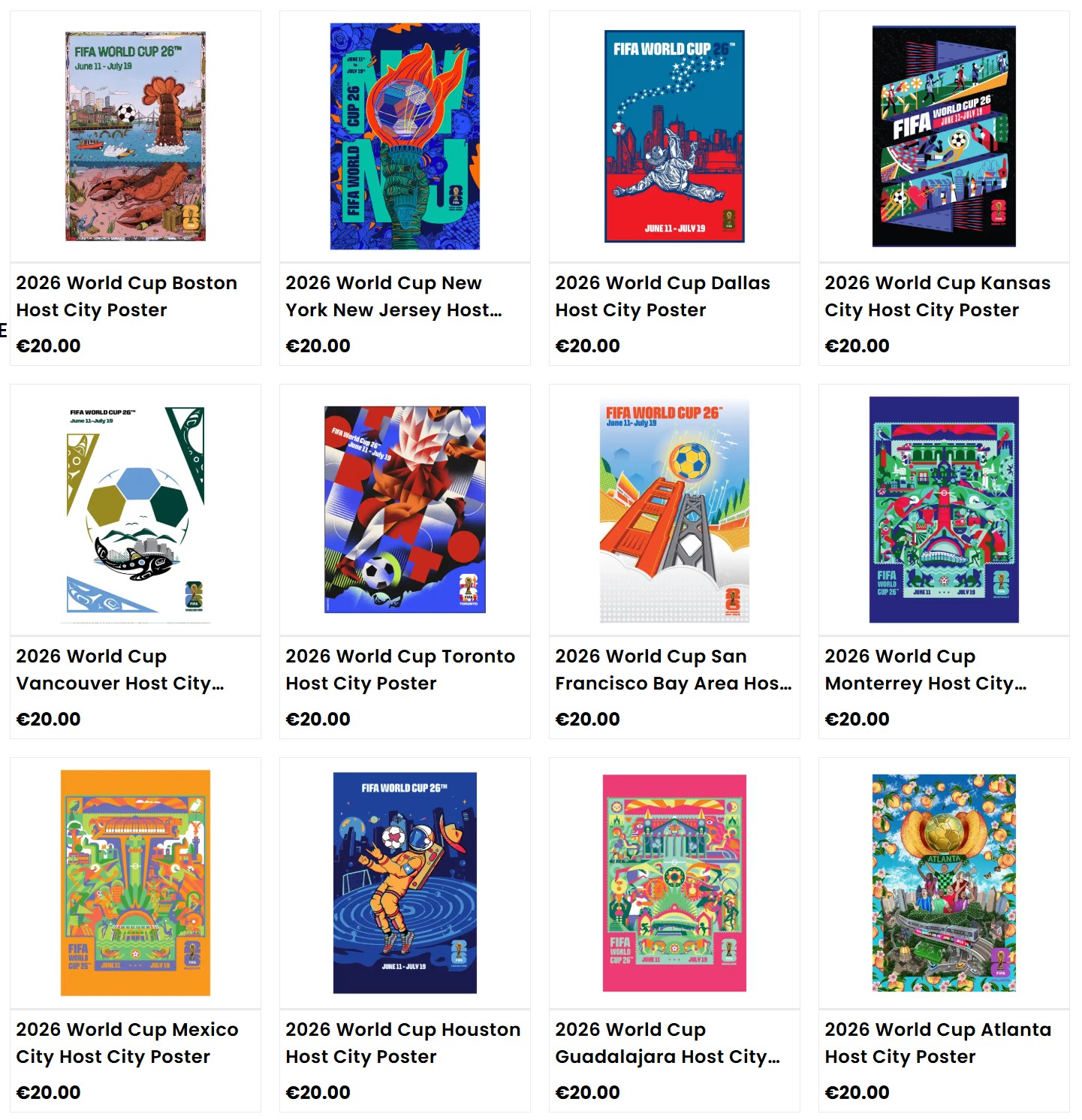 16개의 포스터는 피파 홈페이지에서 판매되고 있다.<사진 3> 피파는 아프리카, 아시아, 북중미 국가들에게 더 많은 출전 기회를 줌으로써 유럽과 남미의 월드컵이라는 인식을 전환하여 진정한 세계 월드컵으로 거듭나겠다는 의도를 강조한다. 피파는 그것이 결국 더 많은 수익을 보장한다는 사실도 잘 인식하고 있다. 공식 포스터 16개라는 초유의 결정이 그것을 대변한다.